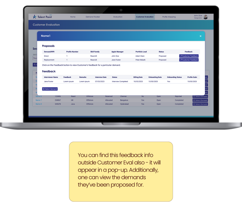 Once a candidate is proposed, customers can provide real-time feedback on their suitability: